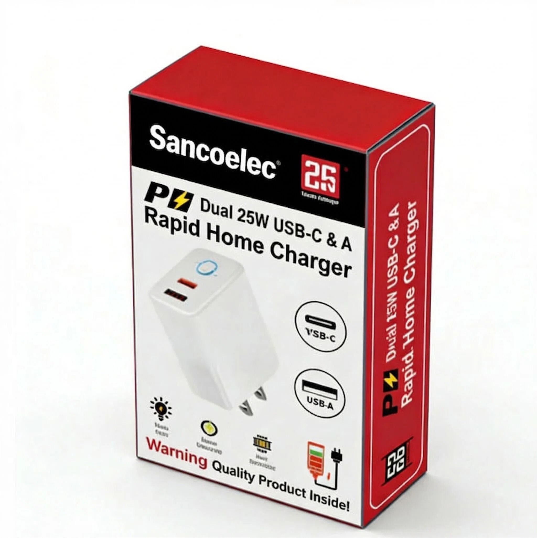 25W USB‑C Power Adapter QC3.0 usb Ports offers fast, efficient charging at home, in the office, or on the go.