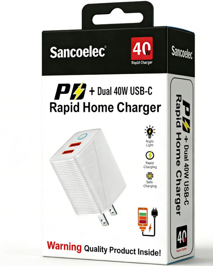The 40W Dual (20w+20w) USB-C Power Adapter offers fast, efficient charging at home, in the office or on the go.