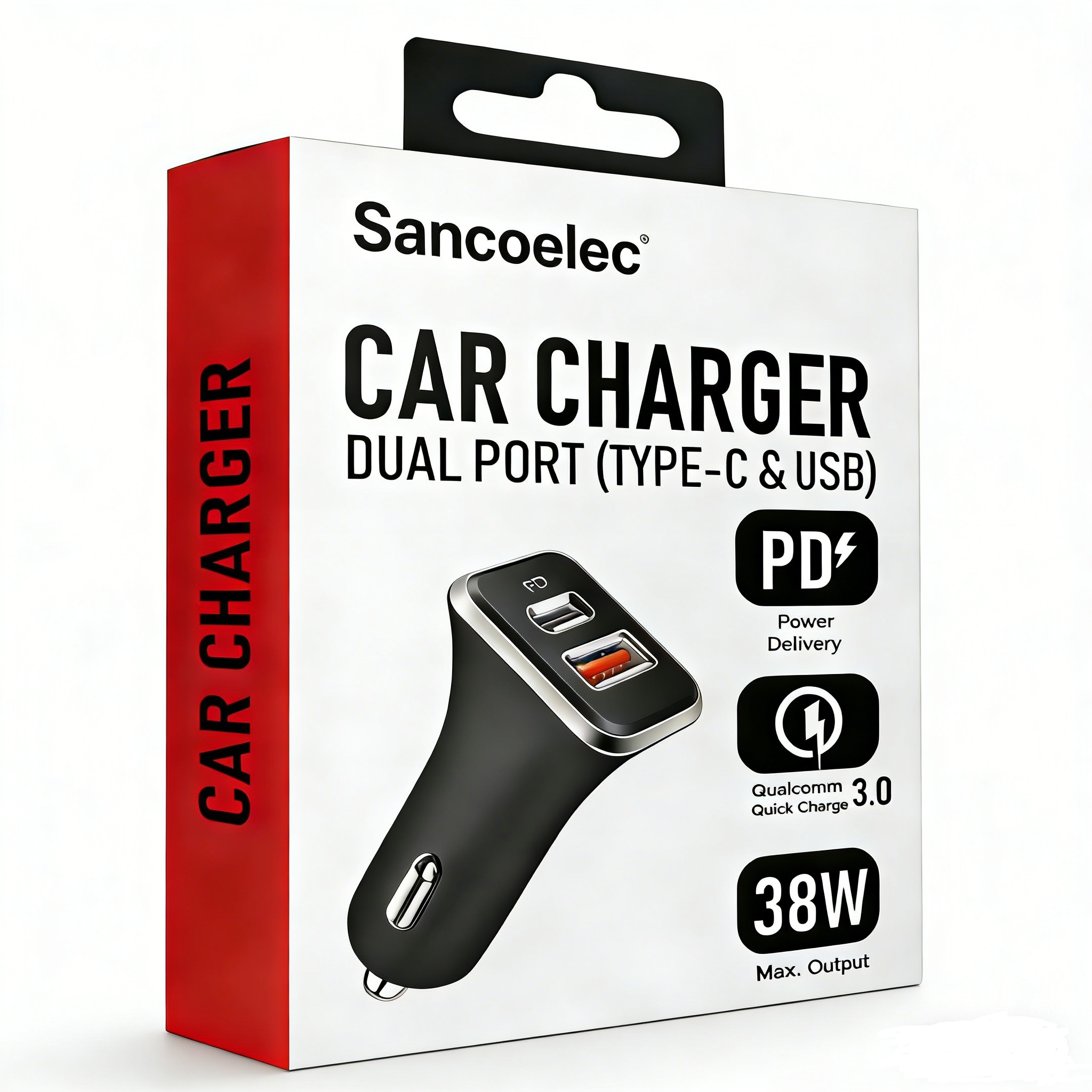 INPUT :DC 12-24VOUTPUT USB :5V-3A 9V-2A 12V-1.5AOUTPUT TYPE C :5V-3A 9V-22A12V-167AMaterials :PCFeature :Max 38w USB c car chargers can do retail package