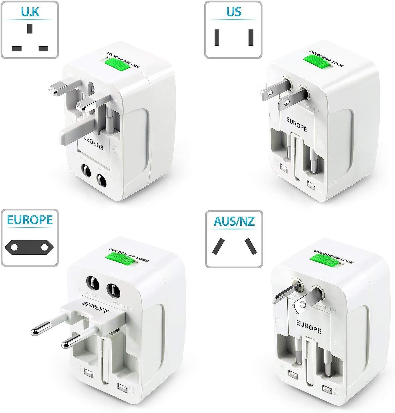 [THE PERFECT WORLDWIDE TRAVEL ADAPTOR] – Use this Universal Power Adaptor to 150+ countries, fits with US UK EU CHINA outlets. This all in one travel adaptor comes in one piece