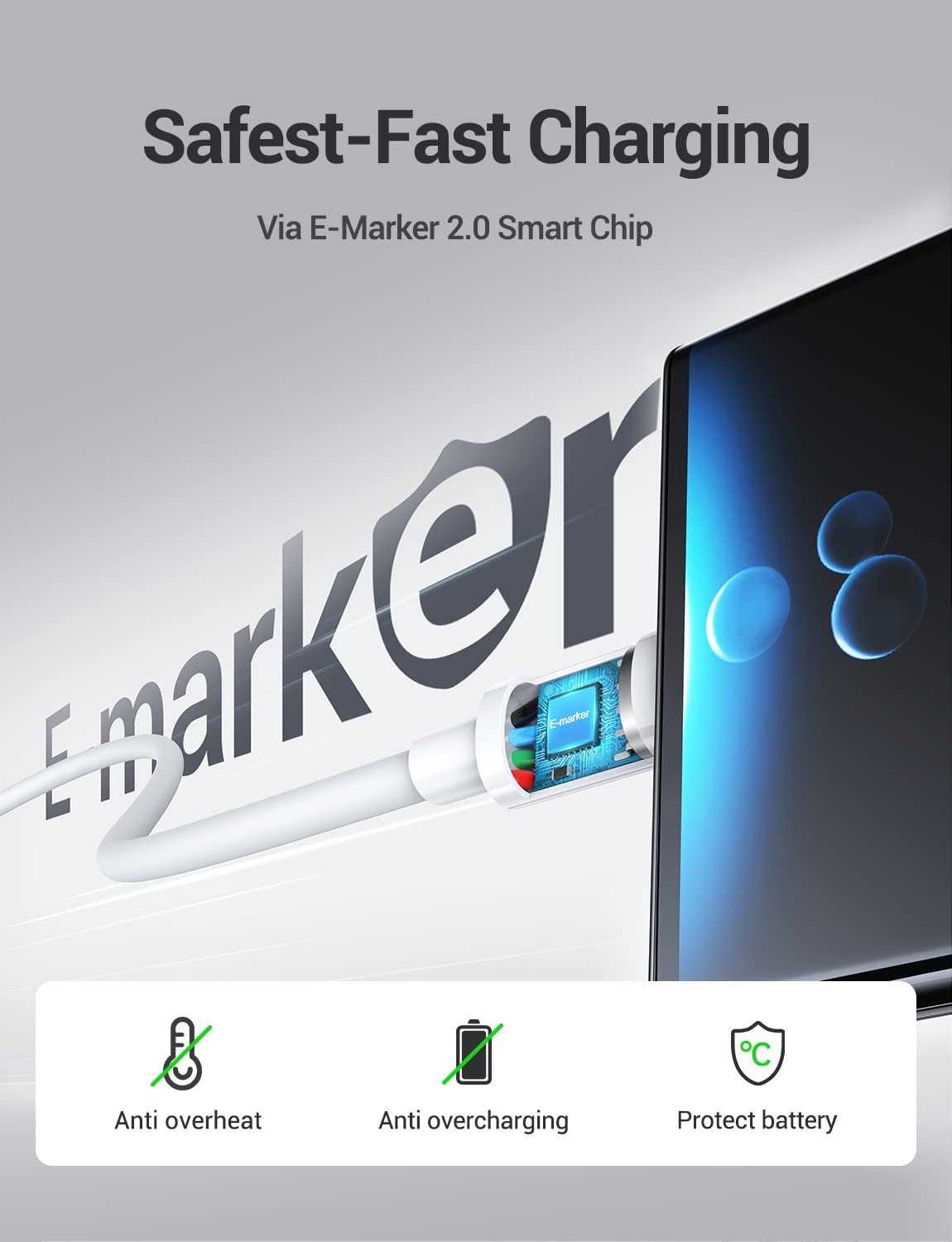 “EMARK SAFE FAST CHARGING CHIP”: all-new EMARKER 2.0 chip ensures device safety while providing a quick charging experience. It guarantees a lower charging temperature to prevent harm to the device and automatically stops charging once the device is fully charged, preventing overcharging that could damage your device's battery.